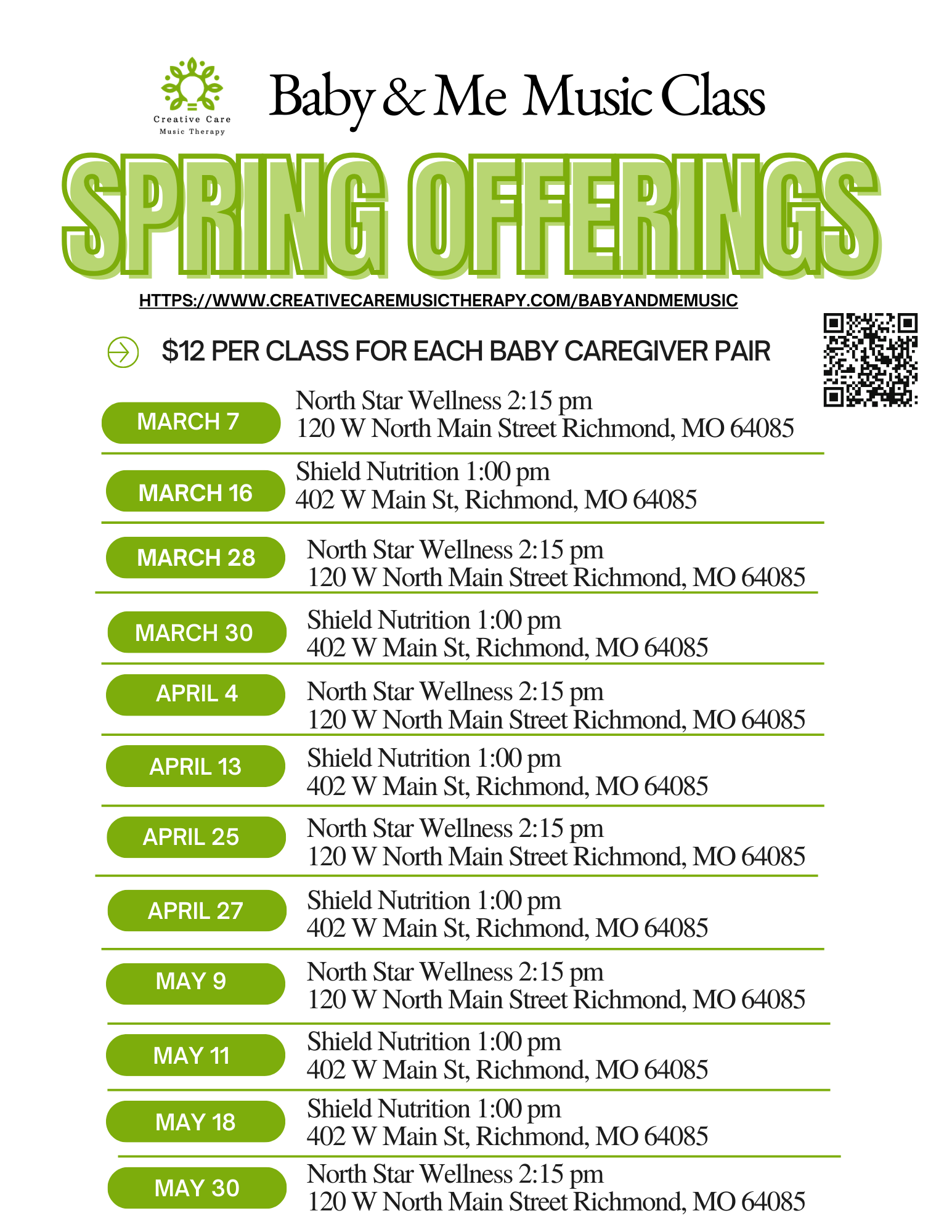 If you’re looking for enriching baby or toddler activities in Richmond or Ray County, Missouri, Baby & Me Music Class from Creative Care Music Therapy offers a joyful, developmentally supportive way to connect and grow together.